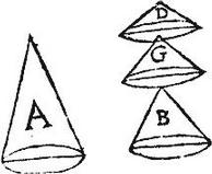 Exempli causa, celsitudo coni A sit aequalis celsitudinibus aliquot conorum ut puta trium B, G, D: sintque omnium bases aequales. Aio quod conus A aequalis est conis B, G, D simul sumptis: nam cum eorum bases sint aequales, erit per 11.12. conus B ad conum A, sicut altitudo coni B ad altitudinem coni A: item conus G ad conum A, sicut altitudo coni G ad altitudinem coni A: ergo per 24.5. coni B, G, simul ad conum A, sicut altitudines conorum B, G, simul sumptae ad conum A: adhuc conus D ad conum A, sicut altitudo coni D ad altitudinem coni A. Rursum ergo per 24.5. coni B, G, D, simul ad conum A, sicut altitudines conorum B, G, D, simul sumptae ad coni A celsitudinem: sed celsitudines conorum B, G, D, simul sumptae aequales sunt celsitudini coni A: ergo et coni B, G, D, simul sumpti aequales sunt cono A: quod est propositum. Idem de quotcumque conis demonstrabimus repetita quoties opus fuerit 24.5. quod propositum est.